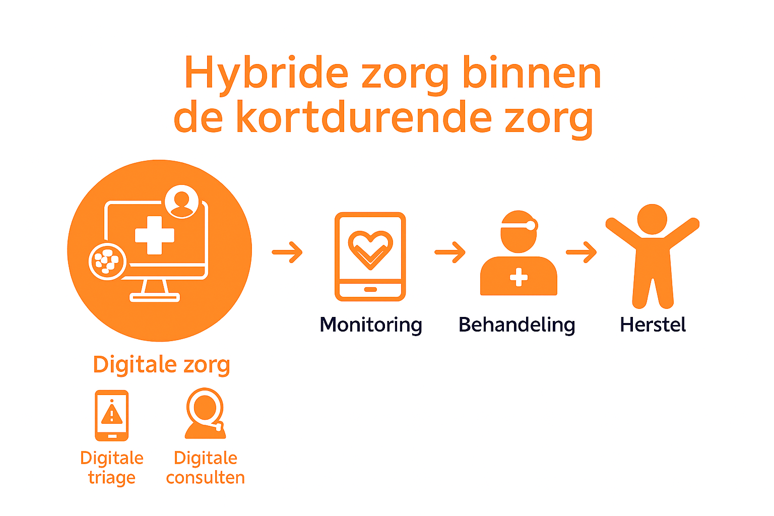 Digitale zorg en AI worden expliciet onderdeel van de regionale keten- en transformatieafspraken. Binnen de kortdurende zorg moeten digitale toepassingen bijdragen aan minder instroom in de tweede lijn, sneller ontslag uit het ziekenhuis en een betere doorstroom naar de thuissituatie. Dit sluit aan bij de transformatieprogramma’s in onder meer de MSZ en de ouderenzorg. Daarin worden digitale triage, telemonitoring en digitale consultatie gekoppeld aan de regionale zorgcoördinatie. Vooral voor de kortdurende zorg betekent dit: